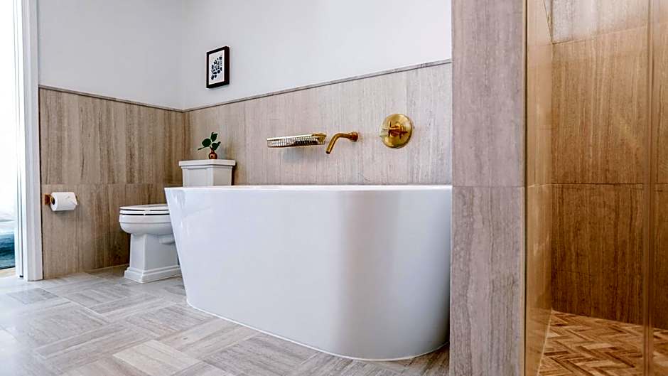 This Monument Corner King Room offers a seating area with custom furnishings, a working desk, handmade bath products, a curated micro library, mini-bar with local and international drinks and snacks, original artwork and photography and an old school radio.