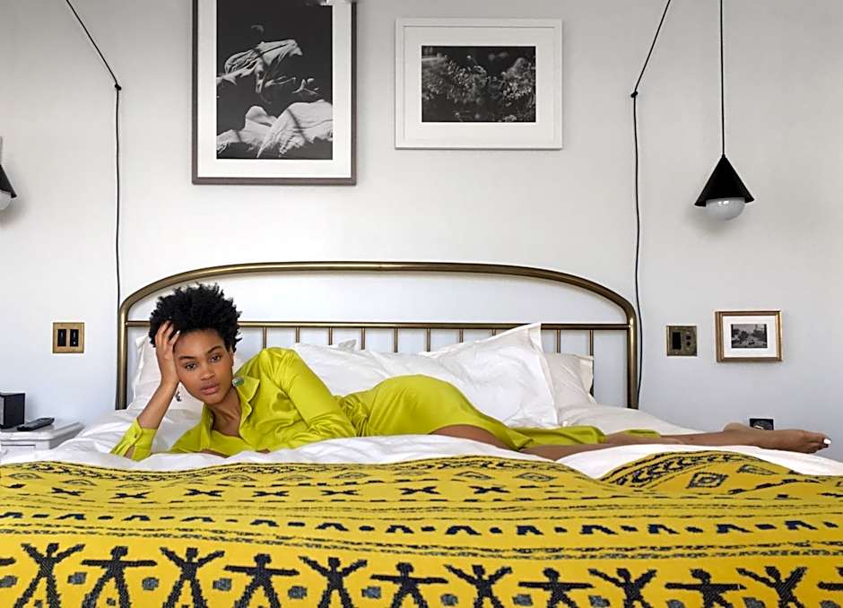 This District King Room offers a seating area with custom furnishings, a working desk, handmade bath products, a curated micro library, mini-bar with local and international drinks and snacks, original artwork and photography and an old school radio.